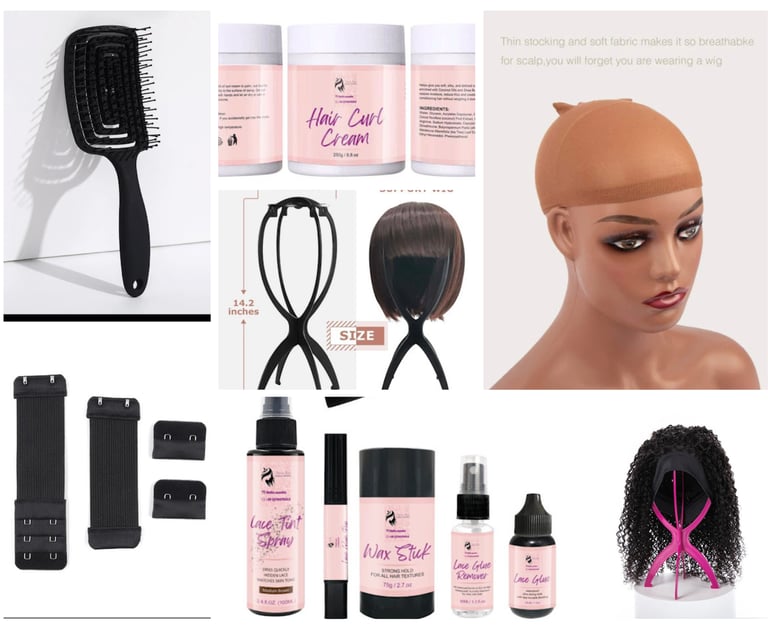 Retrouvez tous nos accessoires pour entretenir votre perruque : porte-perruque, sous bonnets, laques et colles fixantes, shampoo conditioner stick coiffant , Peigne à lisser, spray pour coloration des tules et pleins d’autres…
